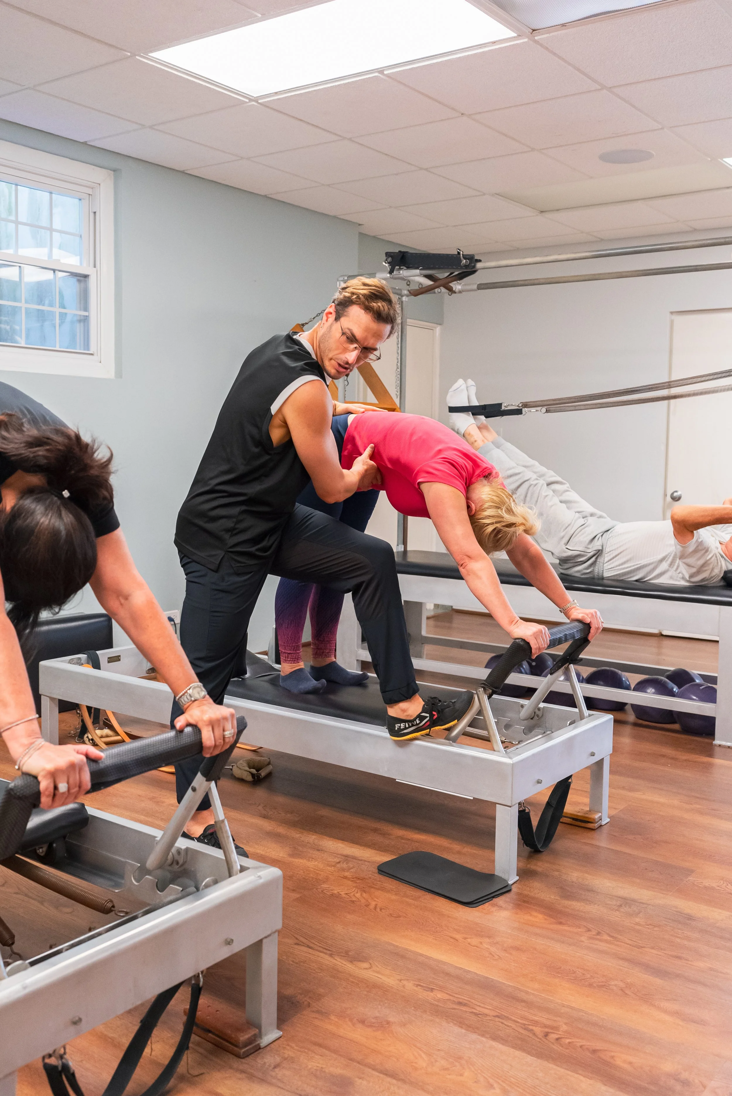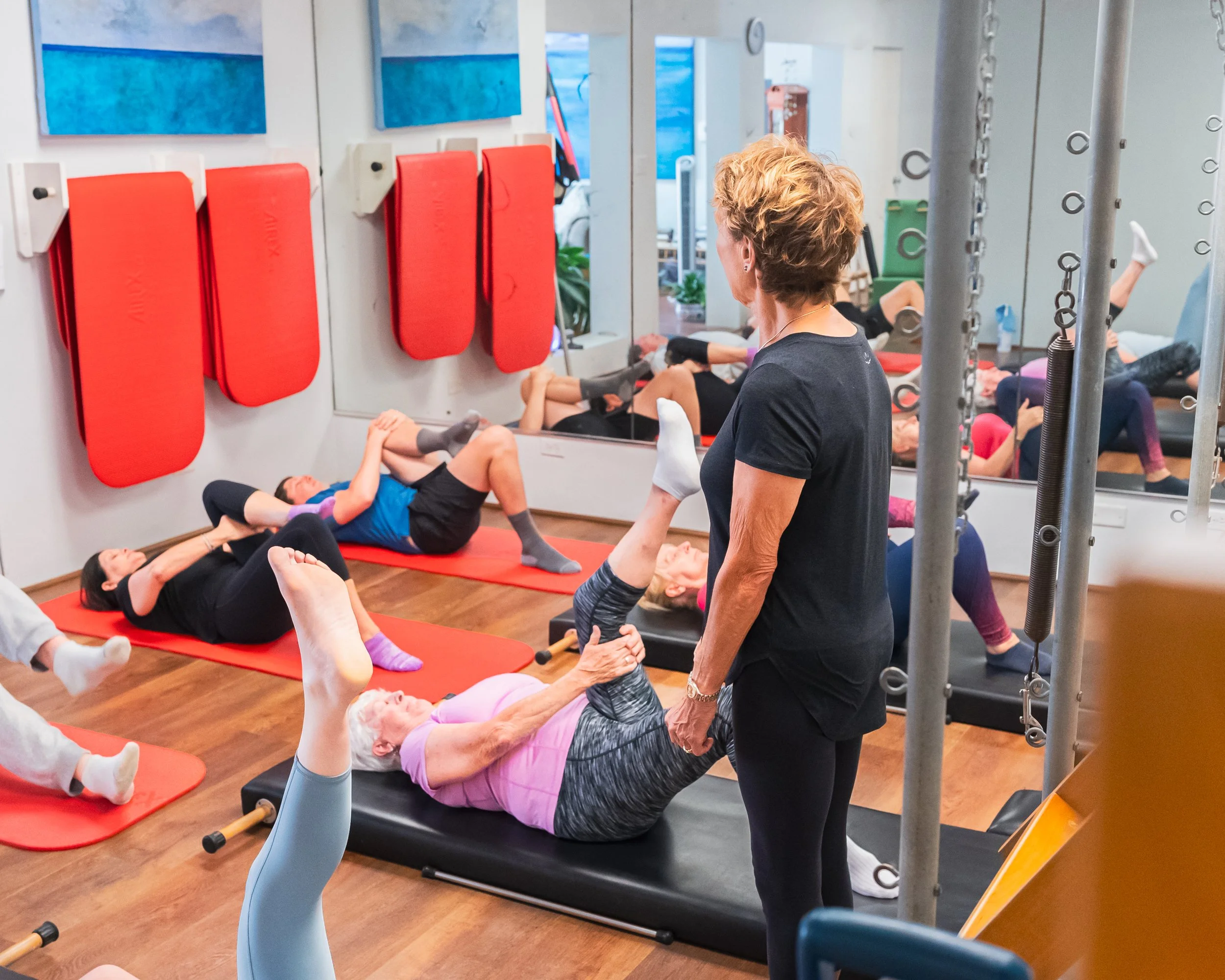 Enjoy the social aspect of exercise with our duet and trio classes. Engage in a comprehensive Pilates workout using all apparatus, or join our Mat and Wall Unit Classes for shared motivation.